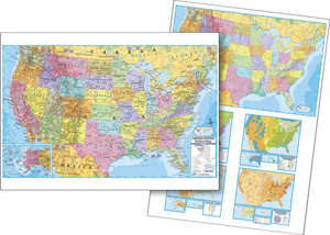 Labeled on the front, unlabeled on the back, these markable and washable laminated desk maps come in packs of five.