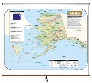 This full-color state map includes shaded-relief topography, county names and borders, major and capital cities, main rivers, and other large bodies of water. It includes insets providing a state flag, a locator map (within North America), a table of statistics, and text with high-interest historical, anecdotal, and geographical information. The single state map comes on a spring roller mountable on a one-inch map rail (already present in many classrooms) or on a backboard. The combo sets comprises one state map plus political maps of the United States and the world, and is also mounted on a spring roller that may require a backboard. The pack of 50 laminated, unlabeled outline maps (8½" x 11") shows rivers, bodies of water, and counties, and include latitude and longitude.