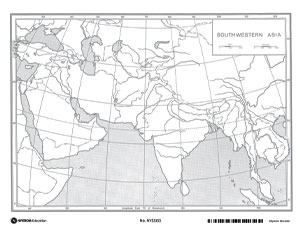 Packs of 50 consumable paper desk maps are available. Unlabeled outline maps measuring 10½" x 15"(maps of this size are marked with an asterisk) or 8½" x 11" include U.S. and world maps, continents, countries, U.S. states, world and U.S. regions, and history maps without boundaries. These black-and-white or two-color activity maps are lightly but distinctly rendered so student markings can stand out strongly.