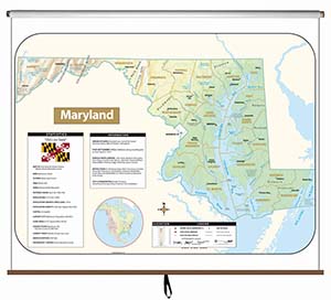 This full-color state map includes shaded-relief topography, county names and borders, major and capital cities, main rivers, and other large bodies of water. It includes insets providing a state flag, a locator map (within North America), a table of statistics, and text with high-interest historical, anecdotal, and geographical information. The single state map comes on a spring roller mountable on a one-inch map rail (already present in many classrooms) or on a backboard. The combo sets comprises one state map plus political maps of the United States and the world, and is also mounted on a spring roller that may require a backboard. The pack of 50 laminated, unlabeled outline maps (8½" x 11") shows rivers, bodies of water, and counties, and include latitude and longitude.