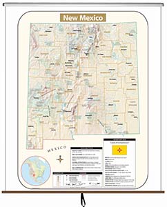 This full-color state map includes shaded-relief topography, county names and borders, major and capital cities, main rivers, and other large bodies of water. It includes insets providing a state flag, a locator map (within North America), a table of statistics, and text with high-interest historical, anecdotal, and geographical information. The single state map comes on a spring roller mountable on a one-inch map rail (already present in many classrooms) or on a backboard. The combo sets comprises one state map plus political maps of the United States and the world, and is also mounted on a spring roller that may require a backboard. The pack of 50 laminated, unlabeled outline maps (8½" x 11") shows rivers, bodies of water, and counties, and include latitude and longitude.