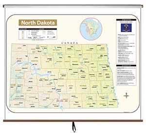 This full-color state map includes shaded-relief topography, county names and borders, major and capital cities, main rivers, and other large bodies of water. It includes insets providing a state flag, a locator map (within North America), a table of statistics, and text with high-interest historical, anecdotal, and geographical information. The single state map comes on a spring roller mountable on a one-inch map rail (already present in many classrooms) or on a backboard. The combo sets comprises one state map plus political maps of the United States and the world, and is also mounted on a spring roller that may require a backboard. The pack of 50 laminated, unlabeled outline maps (8½" x 11") shows rivers, bodies of water, and counties, and include latitude and longitude.