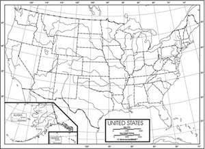 Packs of 50 blank outline maps, laminated and markable/washable with dry erase markers, equip your classroom for geography deskwork.