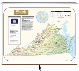 This full-color state map includes shaded-relief topography, county names and borders, major and capital cities, main rivers, and other large bodies of water. It includes insets providing a state flag, a locator map (within North America), a table of statistics, and text with high-interest historical, anecdotal, and geographical information. The single state map comes on a spring roller mountable on a one-inch map rail (already present in many classrooms) or on a backboard. The combo sets comprises one state map plus political maps of the United States and the world, and is also mounted on a spring roller that may require a backboard. The pack of 50 laminated, unlabeled outline maps (8½" x 11") shows rivers, bodies of water, and counties, and include latitude and longitude.